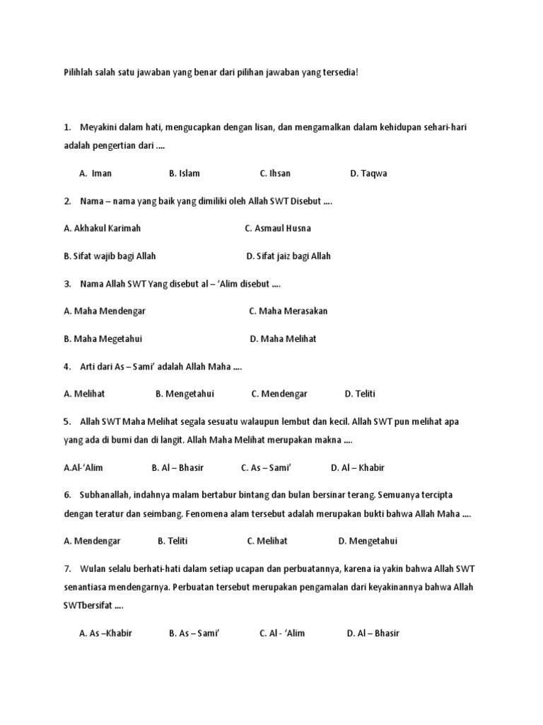 Berikan 2 contoh perilaku al-Khabir dalam kehidupan sehari-hari baik di sekolah maupun di rumah. Jelaskan arti al- Alim al-Khabir as-Sami dan al-Basir. Berikan 2 contoh perilaku al-Alim dalam kehidupan sehari-hari baik itu di sekolah maupun di rumah. Perilaku adil sangat penting untuk dilakukan dalam kehidupan sehari-hari agar tidak merugikan oranglain atau tidak berpihak kepada pihak tertentu sehingga yang lain merasa dirugikan. Sebelumnya aku juga sudah membuat artikel tentang Arti Asmaul Husna untuk menambah pengetahuan kalian silahkan dibaca juga ya. Mempersiapkan baju sendiri dengan teliti jangan sampai salam menggunakan seragam ke sekolah.