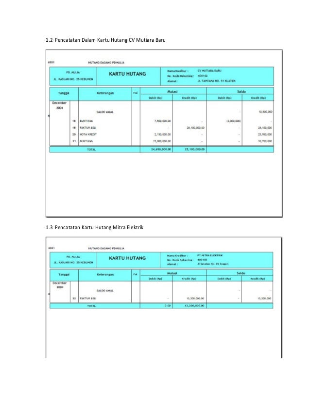 Contoh Kartu Utang Kartu Utang Toko Mnk Jalan