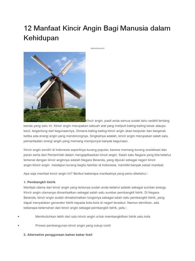12 Manfaat Kincir Angin Bagi Manusia Dalam Kehidupan Pdf