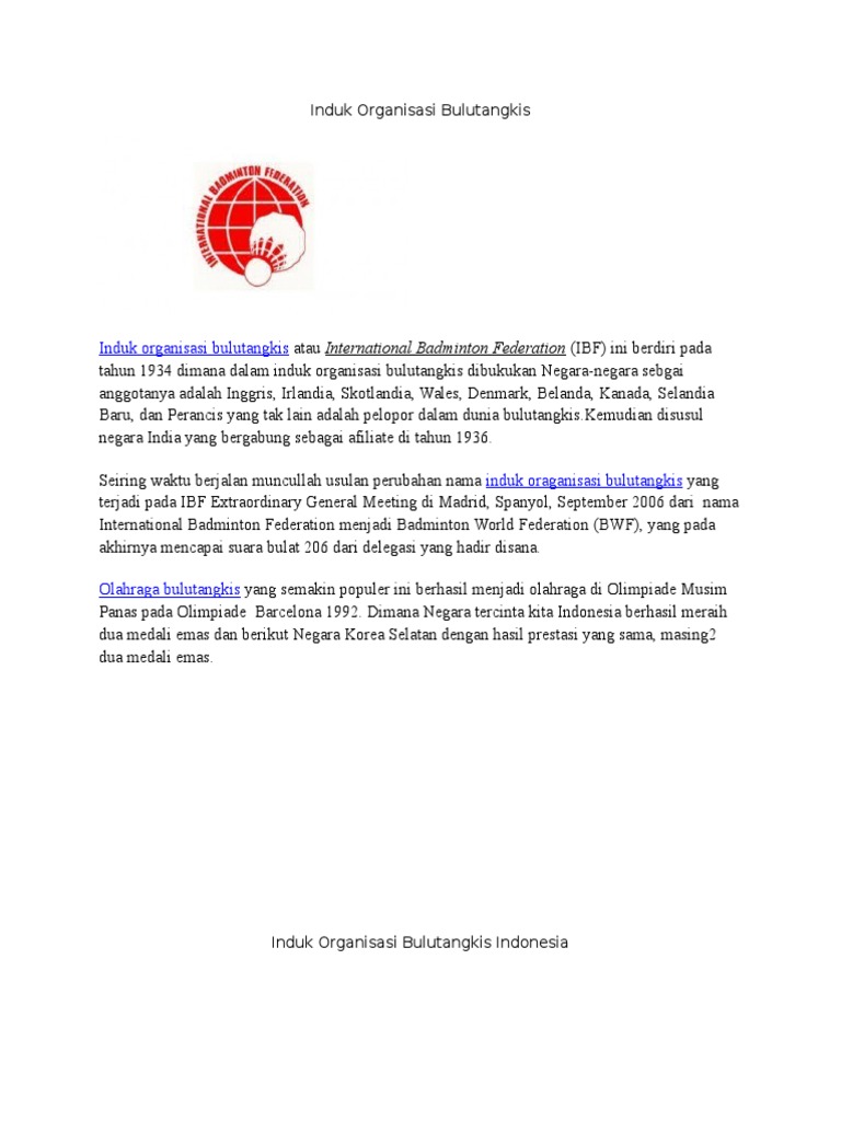 Induk Organisasi Bulutangkis Pdf