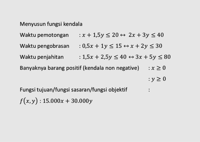 Penyelesaian Masalah Mengenai Program Linear Menggunakan Metode Grafik Matematika