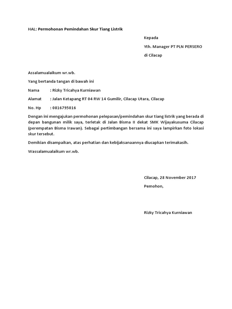 Kebutuhan Kebutuhan Tiang Listrik 27 Tiang Listrik G. Surat Permohonan Geser Tiang Listrikdocx. Orang PLN menghubungi setelah surat kami sampaikan. 3 contoh surat perintah kerja untuk perusahaan dan lainnya. Pindah tiang pem prov banten jl ws supratman pdf document. Demikianlah pembahasan yang dapat kami sampaikan mengenai surat permohonan pemindahan tiang listrik.